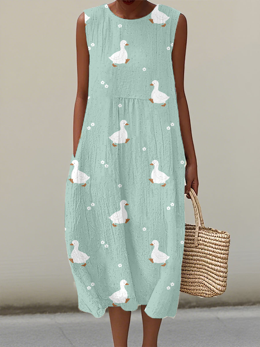 Women's Cute Duck Art Print Linen Dress
