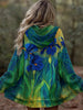 Women's Iris Embroidered Contrast Color Hooded Zip-Up Cardigan Loose Sweatshirt