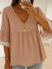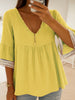 Women's Lace Patchwork Linen V-Neck Shirt