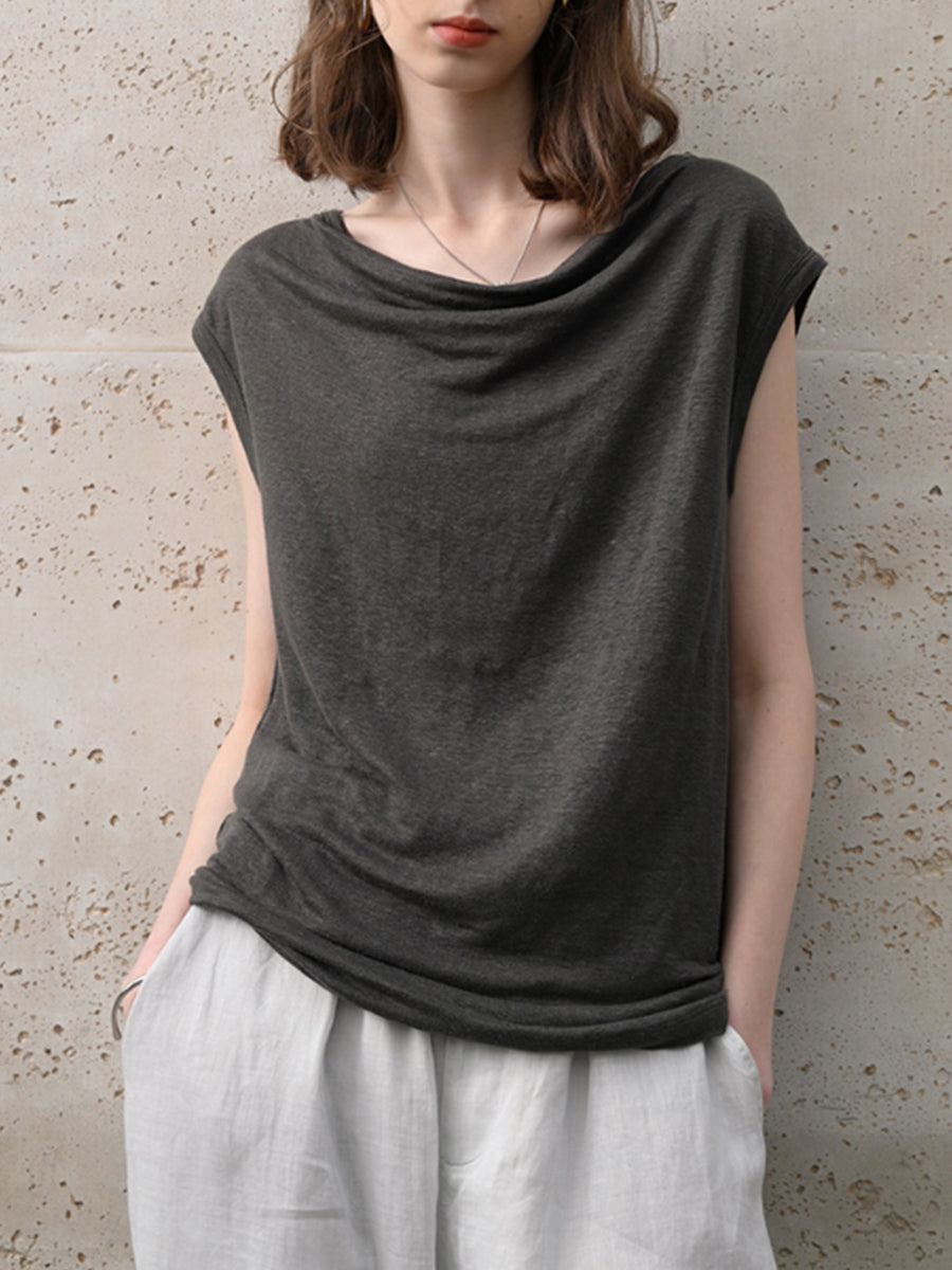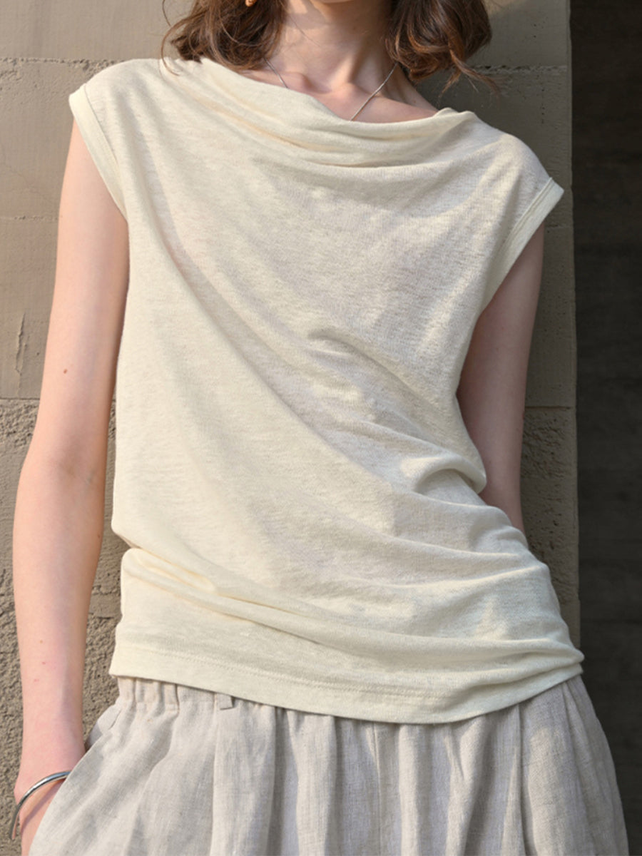 Women's Linen One-Shoulder Lazy Knit Short Sleeve