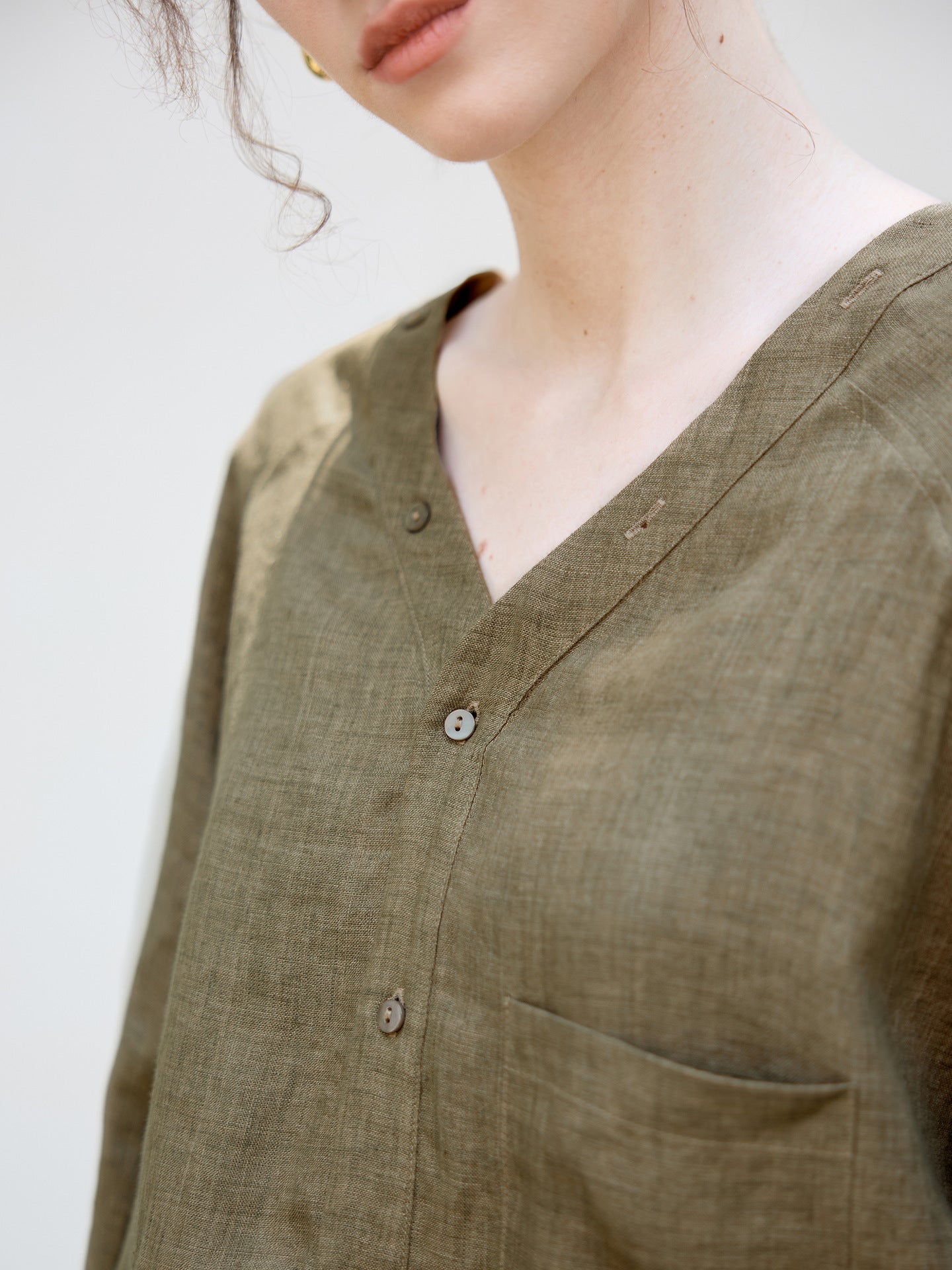 Women's Linen V-Neck Raglan Long Sleeve Shirt