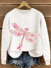 Women's Pink Floral Dragonfly Embroidered Knit Sweater