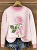 Women's Pink Ribbon & Floral Embroidered Knit Sweater