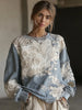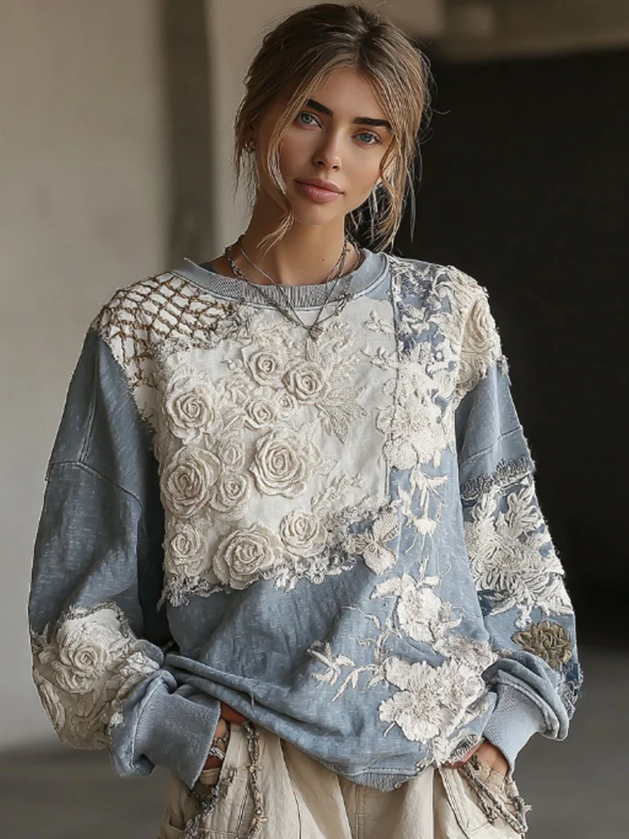 Women's Retro Rose Stitching Casual Crew Neck Sweatshirt