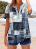 Women's Vintage Denim Patch Cotton Linen Casual Short Sleeve Shirt