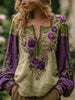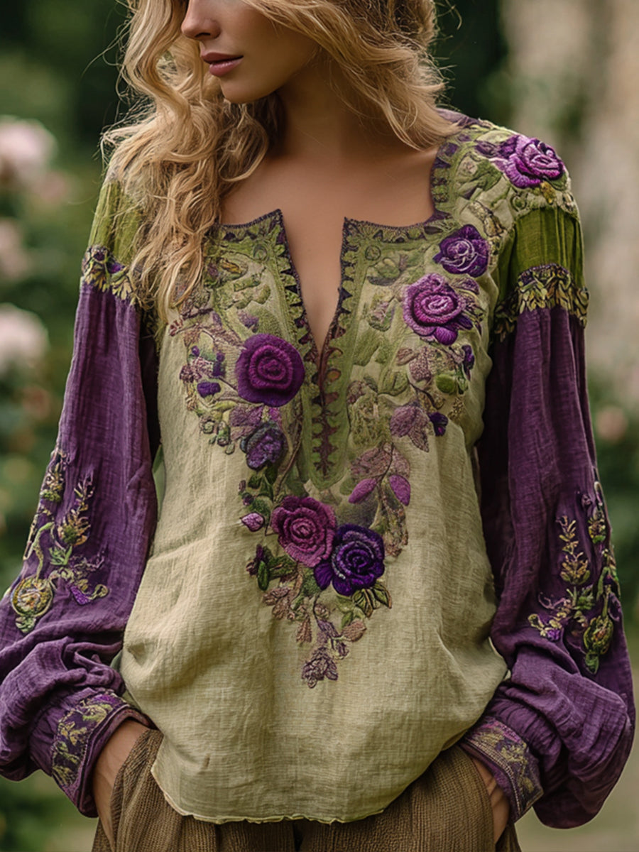 Women's Vintage Elegant Floral Embroidered Linen Shirt