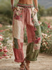 Women's Vintage Rose and Floral Patchwork Art Linen Pants